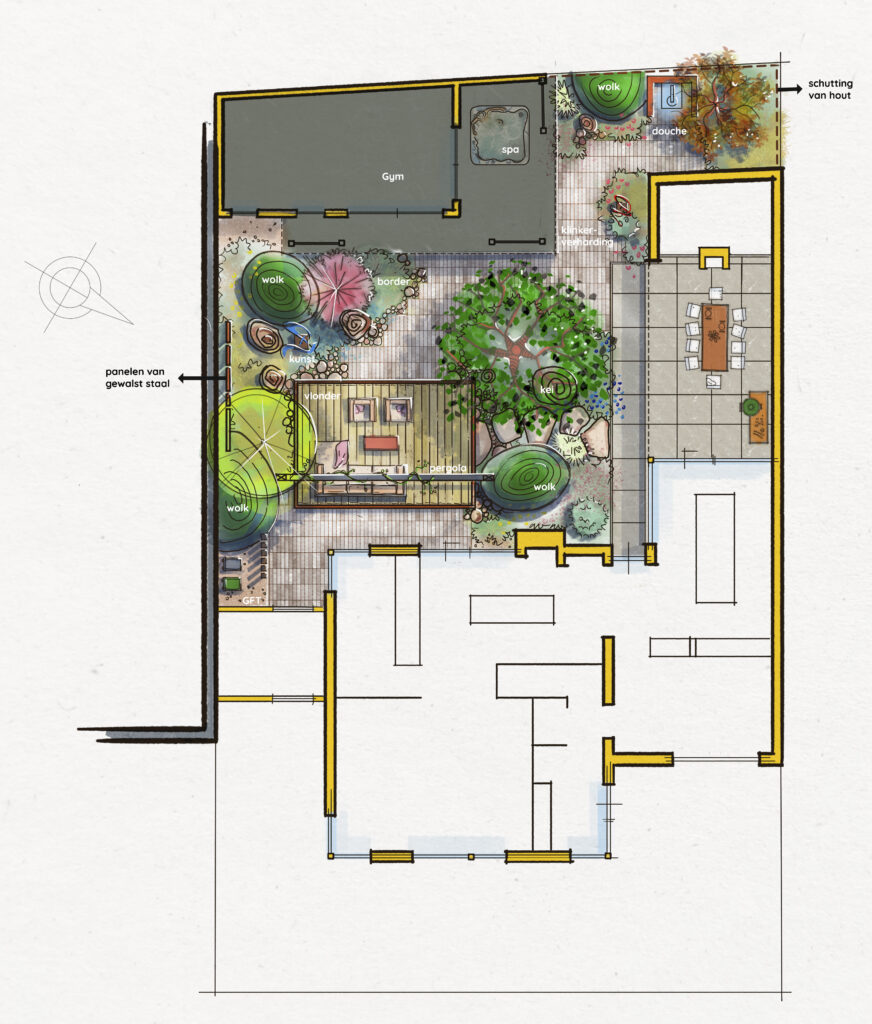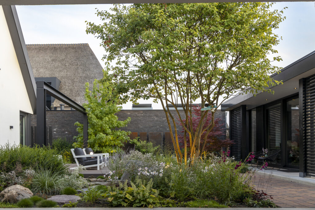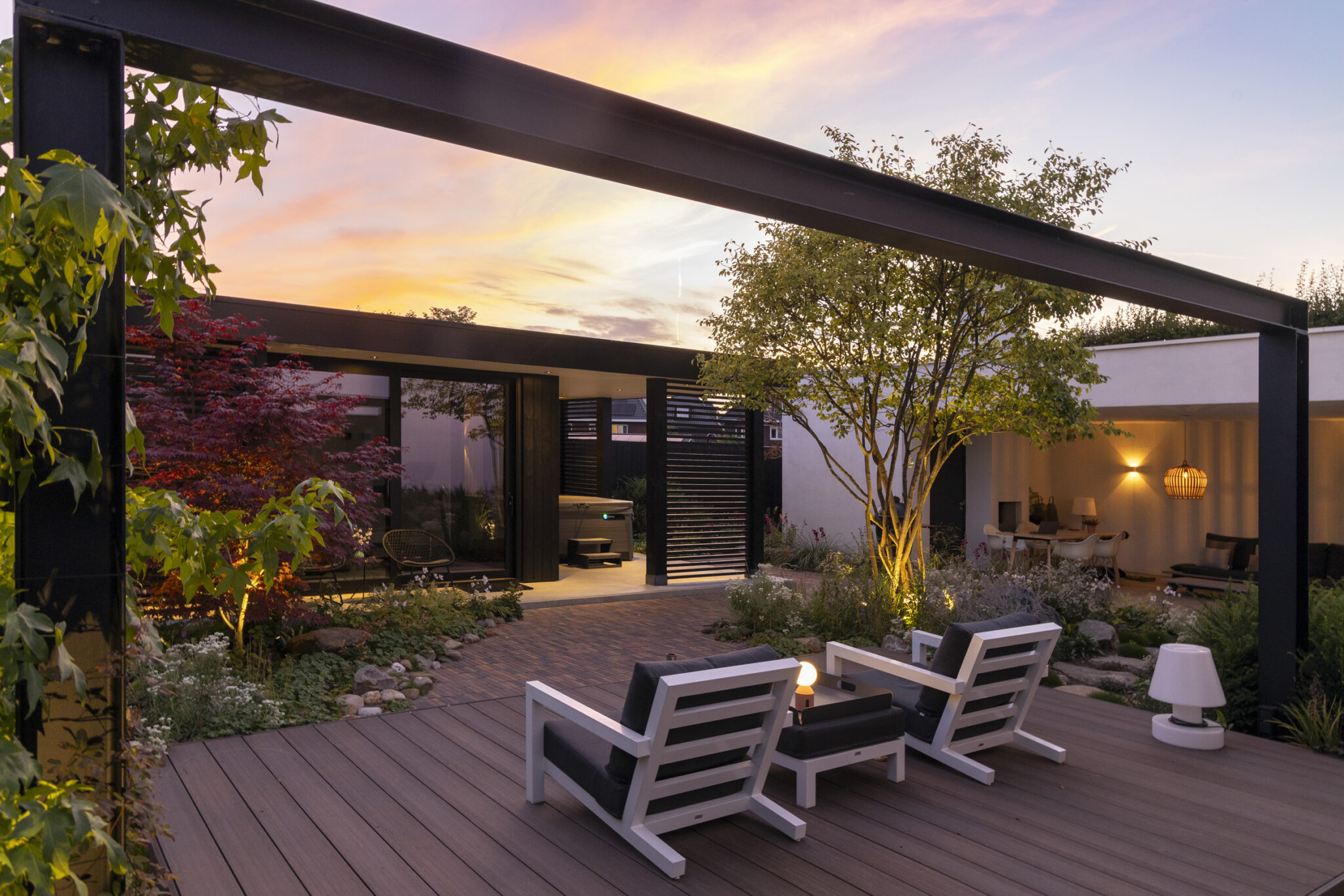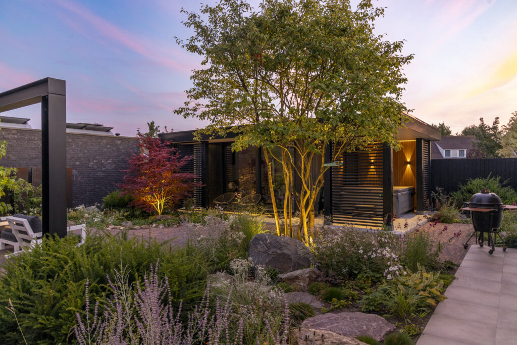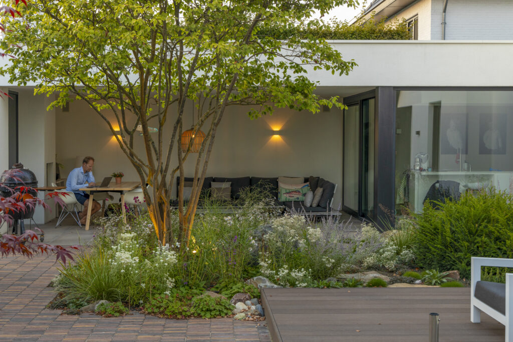 Wat een fijne tuin is dit geworden! Thuisblijven in deze ommuurde stadstuin in Bavel was nog nooit zo ontspannen. Of je nu lekker wil loungen, iets lekkers wil bereiden op de BBQ, sporten of bubbelen in de spa, het kan allemaal. En dit allemaal in een tuin die vol staat met mooie bloemen en planten. Leuk weetje, deze foto’s zijn genomen in het eerste jaar. De klant is dan ook echt tevreden over het resultaat, ze hebben nog nooit zo veel buiten gezeten.